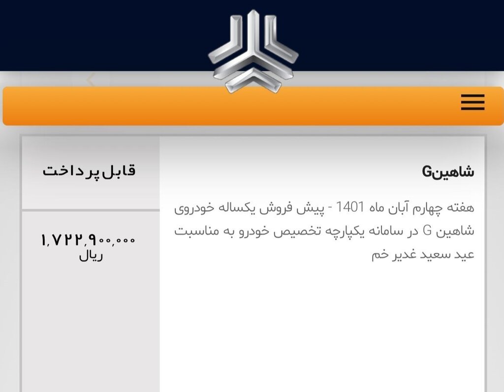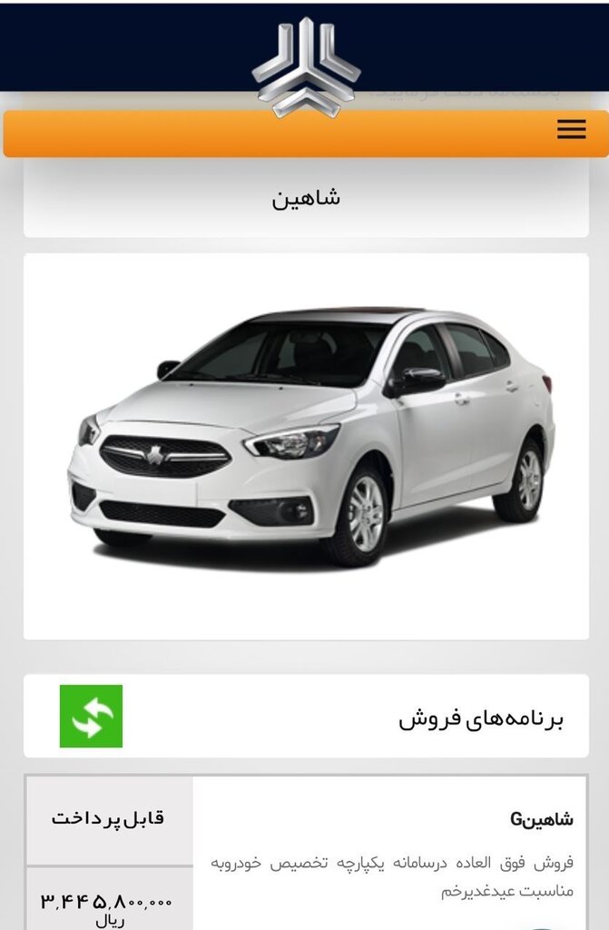 در طرح فروش فوق العاده خودروی شاهین مبلغ ۳۴۴ میلیون و ۵۸۰ هزار تومان در نظر گرفته شده است.